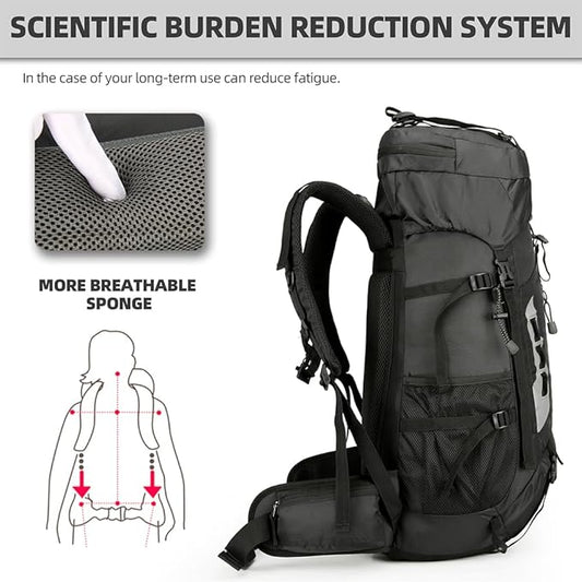 Bseash 60L Hiking Camping Backpack with Rain Cover, Waterproof Large Capacity Outdoor Sport Travel Daypack Climbing Touring (Black)