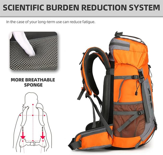 King'sGuard 60L Hiking Backpack Large Waterproof Camping Backpack for Men and Women Lightweight Frameless Backpacking Backpack with Rain Cover (Orange)