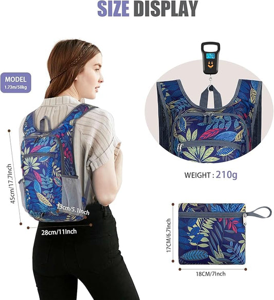 15L Hiking Backpack Small Travel Backpack Lightweight Packable Backpacks Casual Daypack for Women and Men, Blue Leaf