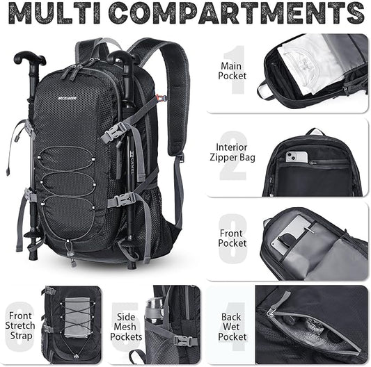 40L Lightweight Hiking Backpack Travel Packable Daypack for Women and Men, Black