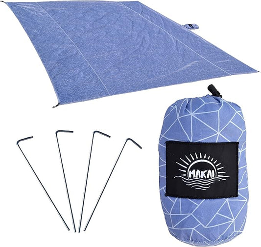 Makai – Lightweight Sheet Style Beach Blanket, Sand Dosen't Stick, Extra Large 8’ x 9’, Compact Strong Parachute Nylon Beach Mat, Stays Cool, Quick Drying, Multifunctional