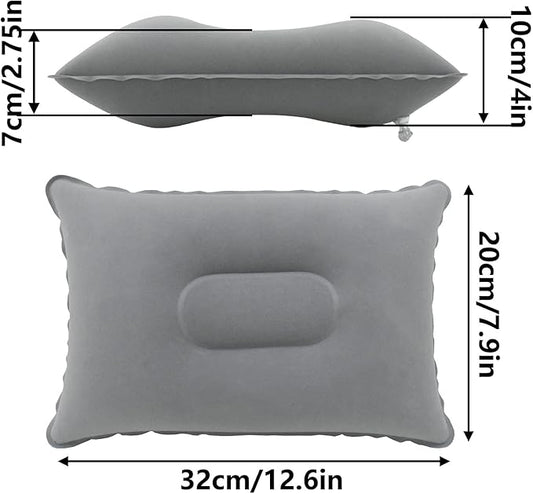 2 Pack Gray Ultralight Inflatable Pillow Small Squared Flocked Fabric Air Pillow for Hiking, Camping, Traveling, Napping, Desk Rest, Neck & Lumbar Support