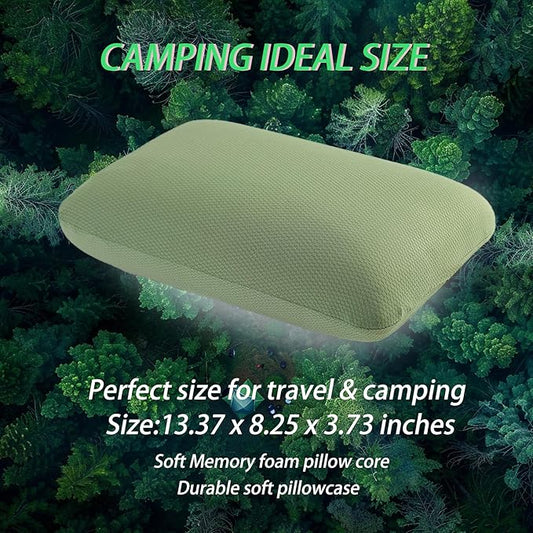 Travel Pillow Small Camping Pillow Memory Foam Bed Neck Soft Pillow Lightweight Easy to Carry Portable Cooling Home Pillow Removable Pillow Cover with Travel Storage Bag (Green)