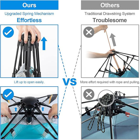 WolfWise 3-4 Person Easy Up Beach Tent UPF 50+ Portable Instant Sun Shelter Canopy Umbrella with Extended Zippered Porch, Blue