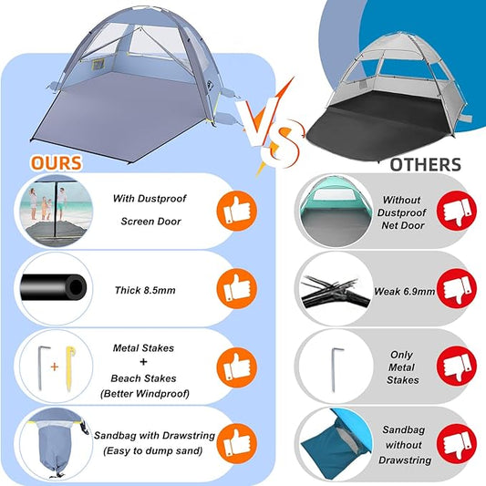 Venustas Beach Tent Sun Shelter for 3-10 Person, UPF 50+ UV Protection Canopy, Lightweight and Easy Setup Cabana, Portable Beach Shade