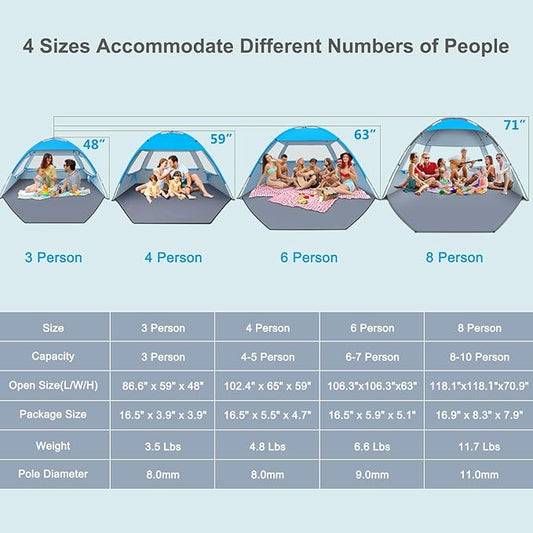 Gorich Beach Tent Sun Shelter for 3/4-5/6-7/8-10 Person with UPF 50+ UV Protection, Lightweight & Easy Setup Beach Shade Canopy, Portable Beach Shade Tent Beach Cabana