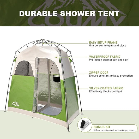 Instant Pop-up Camping Shower Tent Privacy Shelter with 1 Room/2 Rooms, Portable Outdoor Shower, Changing Room, Sun Shelter for Camping, Beach Hiking, and Fishing