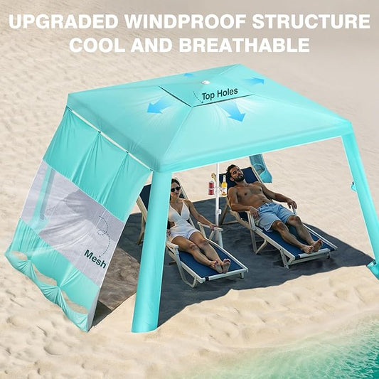 Beach Canopy Tent Shade with Sidewalls 10x10FT, 6.6FT Tall, UPF50+ Sun Shelter, Windproof & Water Resistant, Includes Guylines Sand Shovel Stability Poles, Easy Up for Beach Outdoor Camping Backyard