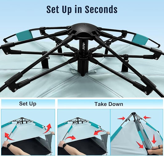 Beach Tent Pop Up Shade, Instant Beach Tents Sun Shelter with UPF 50+ UV Protection, Lightweight & Easy Setup Tent 2-6 Person