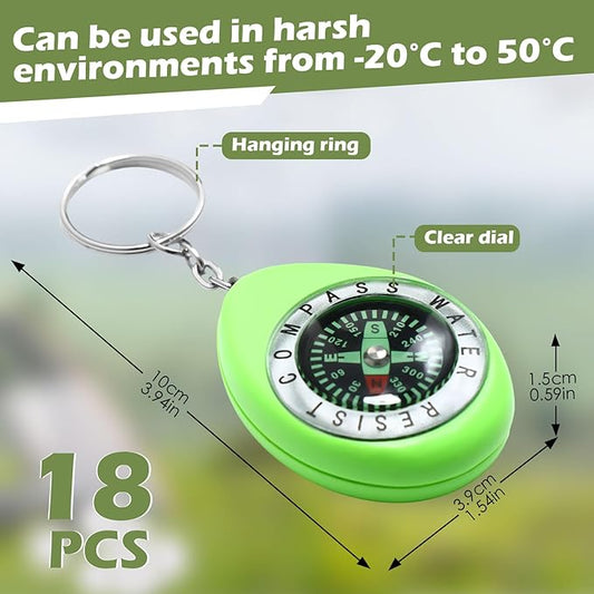 Janinka 18 Pcs Small Keychain Compass for Kids Mini Pocket Survival Compass Bulk for Outdoor Hiking Camping Hunting Climbing