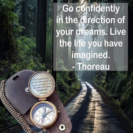 -Thoreau's Go Confidently Graduation Gift for him, Camping Compass with Leather Pouch Boating Hiking Religious Gifts, Missionary Gifts Keepsake. Confirmation Gift Direction Compass