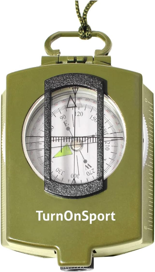 TurnOnSport Lensatic Military Compass - Tritium Compass with Pouch for Hiking, Camping, Backpacking & Survival Navigation