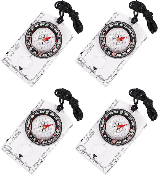 4 Pcs Outdoor Compass with Adjustable Declination,Magnifier,Ruler,Scale. Multifunctional Orienteering Waterproof Compass for Map Reading, Navigation, Hiking