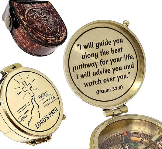 Brass Compass Engraved with Religious Scripture Verse - Ideal Gift for Son, Grandson, Daughter - Perfect for Baptism, Communion, Church and Graduation Day Present