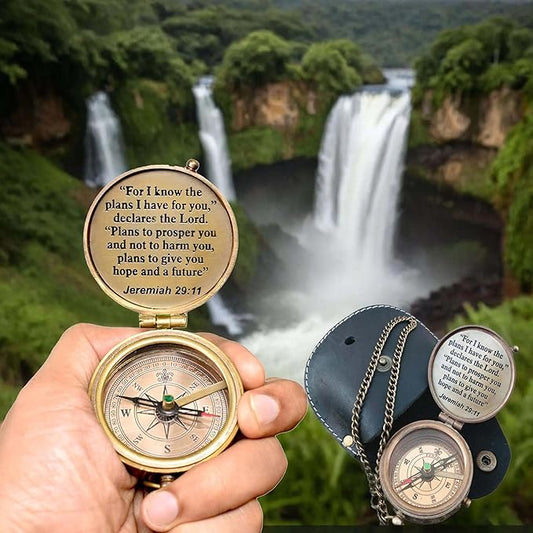 Brass Compass Engraved with Religious Scripture Verse - Ideal Gift for Son, Grandson, Daughter - Perfect for Baptism, Communion, Church and Graduation Day Present