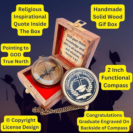 Gradautaion Gift - Congratulations Graduate Gifts for Graduation 2024, Engraved Compass in Wood Box, Unique Uplifting Inspirational Gift, College High School Graduation Gift for Boys and Girls
