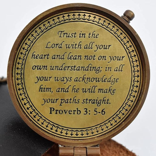 Trust in The Lord Engraved Compass, Proverbs 3: 5-16 Graduation gift, Compass with Stamped Leather case, Camping Compass, Boating Compass, Confirmation Gift Ideas, Religious Gifts, Missionary Gifts