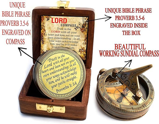 Trust in The Lord with All Your Heart -Proverbs 3: 5-6 Quote Engraved Compass with Wooden Box, Birthday, Baptism, Communion, Christmas, Graduation Day Gifts 2025 Compass for Women Mens Boy Girls