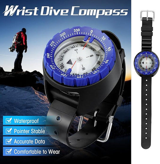 Scuba Compass, Professional Waterproof 5ATM Dive Wrist Compass with TPU Band for Outdoor Sports Diving, Sailing, Hiking, Survival Emergency