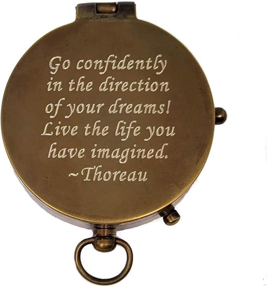 MAI 'To Live Would Be an Awfully Big Adventure' Engraved Brass Compass with Wooden Box, Antique Finish, Jeweled Needle for Him/Her, Wedding Anniversary, Lovers