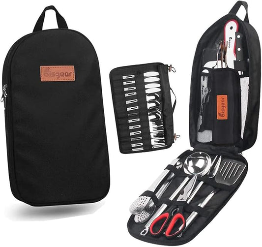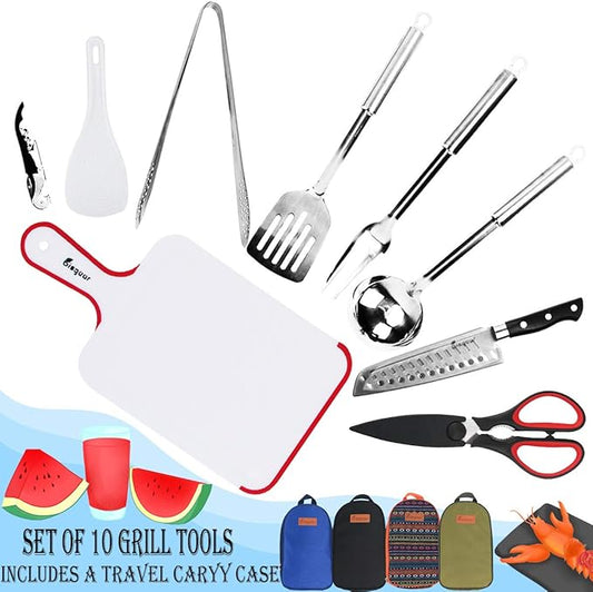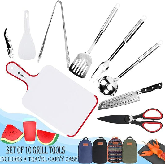Camp Cooking Utensils | 11 Piece Camping Kitchen | RV Cookware Kit | Travel Grill Set | BBQ Accessories & Essentials for Camper