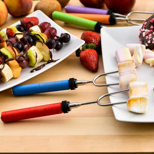 Marshmallow Roasting Sticks kit-Telescoping Stainless Steel Cookware Set Forks for Smores & Best Camping Accessories for Kids Over Campfire & Hot Dog Fire Pit Cooking