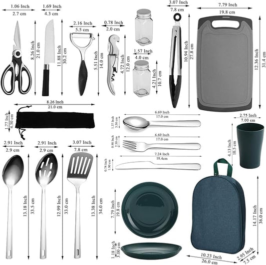 Camping Kitchen Utensil Set Outdoor Kitchen Gear, Outdoor Cooking and Grilling Utensil Travel Set Perfect for Camping Accessories Cooking, RV Camp. Camping, BBQs, Parties and More