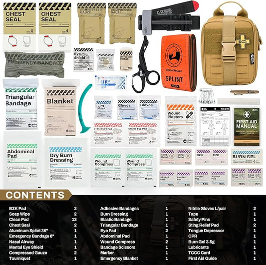 RHINO RESCUE IFAK Trauma Kit with Tourniquet, Tactical First Aid Kit Molle Pouch for Military, Combat, Car, Camping, Hiking, Travel, FSA HSA Eligible (Coyote Brown)