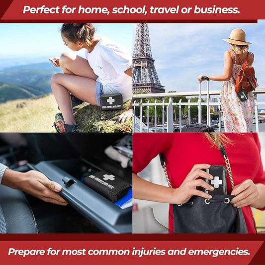 M2 BASICS All-Purpose 150 Piece First Aid Kit | Car, Travel, Home, Hiking, Camping, Survival | Small Emergency Kit, Medical Kit