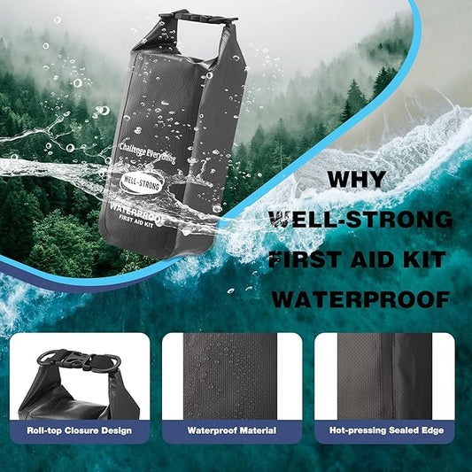 Waterproof First Aid Kit Roll Top Boat Emergency Kit with Waterproof Contents for Fishing Kayaking Boating Swimming Camping Rafting Beach Dark Grey