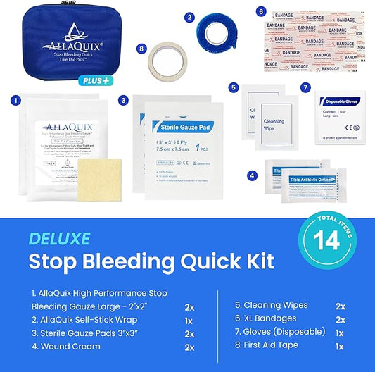 Stop Bleeding Quick Kit - First-aid with AllaQuix Stop Bleeding Gauze (Blood clotting Bandage) (Deluxe)…