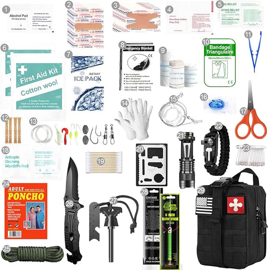 Survival Kits, 174Pcs Survival Gear First Aid Kit IFAK with Molle System Essential Camping Gear Emergency Medical Supplies for Car Fishing Hunting Outdoor Adventure