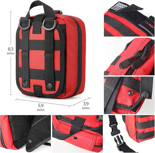 I GO Survival First Aid Kit, 251 Pieces Compact Tactical Trauma First Aid Bag, Molle Compatible Emergency Pouch for Outdoor Camping Hiking Backpacking and Travel
