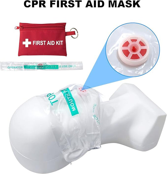 Mini First Aid Kit - CPR Pocket Mask Keychain CPR Face Shield with Breathing Barrier & Elastic Belt & One Pair of Disposable Gloves for Travel Home Camping - Emergency Supplies (5 Set)