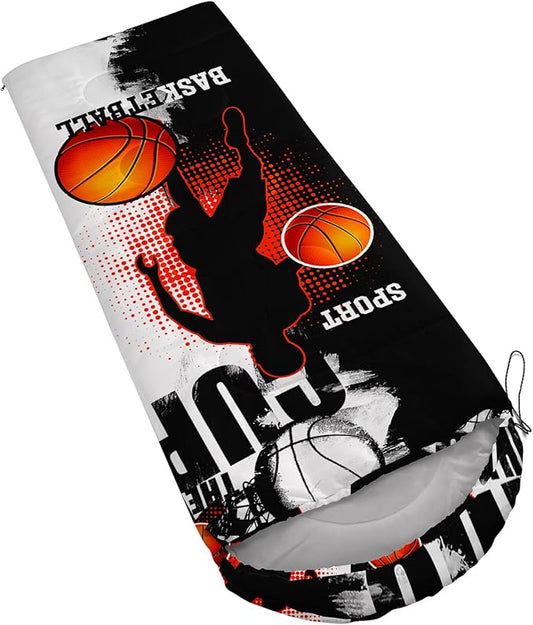 AILONEN Boys Sports Camping Sleeping Bags,Lightweight & Waterproof,3 Season Warm & Cool Weather,Black Player Basketball Sleeping Bags for Kids Adults,Travelling,Outdoors