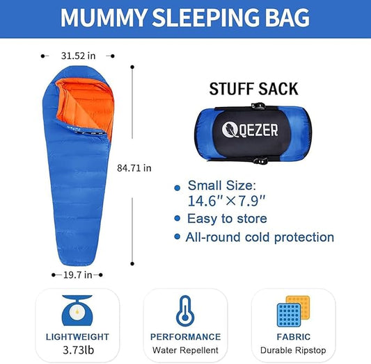 Down Sleeping Bag for Adults 0°F 10°F 15°F 20°F Backpacking Sleeping Bag for Cold Weather with Compression Sack