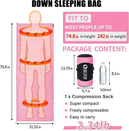 Down Sleeping Bag for Adults 0°F 10°F 15°F 20°F Backpacking Sleeping Bag for Cold Weather with Compression Sack