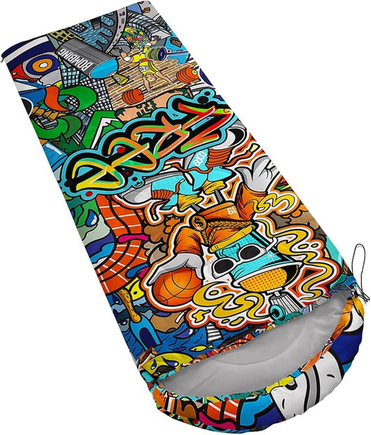 AILONEN Boys Sports Camping Sleeping Bags,Lightweight & Waterproof,3 Season Warm & Cool Weather,Black Player Basketball Sleeping Bags for Kids Adults,Travelling,Outdoors
