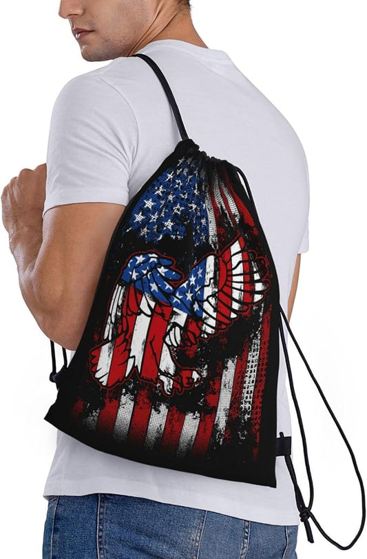 Eagle Outline Drawstring Backpack American Flag Gym Drawstring Bag Patriotic Gift for Independence Day Veterans Day Memorial Day, 4th of July Party Favor Goodies Storage Bags, 3112036