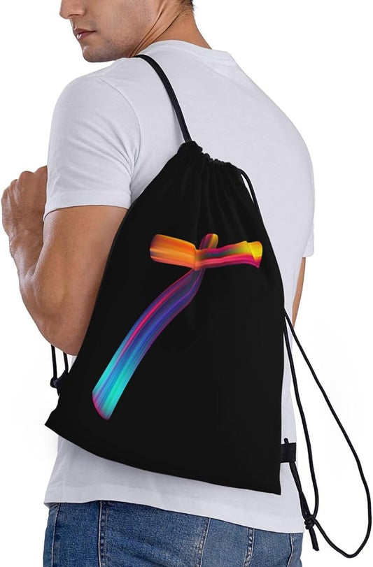 Drawstring Bags Initial Drawstring Backpack Sackpack Black Draw String Cinch Bags for Sports, Gym, Travel, Swimming, Beach, Camping, Rainbow Letter T