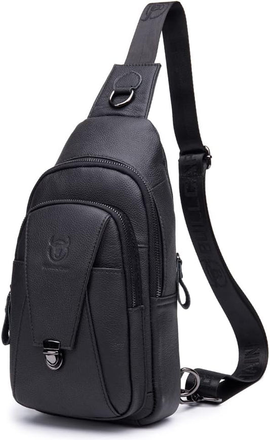 KPYWZER Sling Bag Men Women Genuine Leather Shoulder Backpack Satchel Chest Casual Daypack Crossbody Outdoor Day Pack Backpacks Black