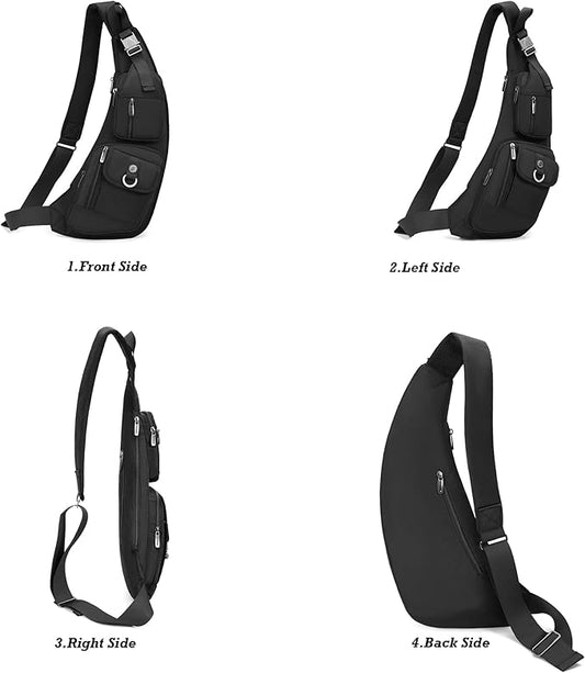 KPYWZER Nylon Sling Bag Backpack Handbag for Men Women Travel Outdoors Sports Hiking Casual Crossbody Chest Pack Shoulder Pouch Multipurpose Daypack Black