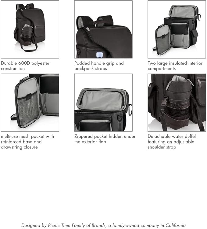 • Features two large insulated interior compartments, and non-slip, extra-comfortable backpack straps