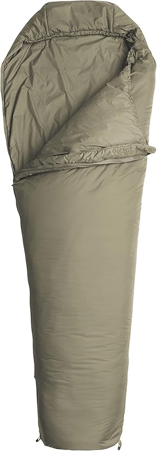 • Designed with a draft collar and hood, an anti-snag two-way zipper, hanging dry tabs, reinforced foot lining, and a stuff sack