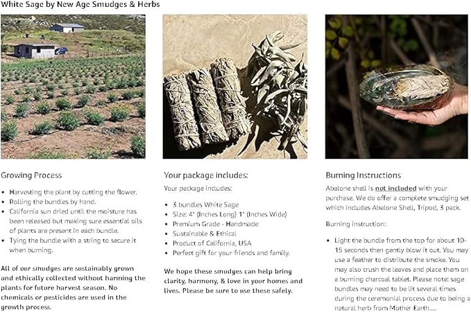 • Package Includes 3 White Sage 4 Inch bundles - New Age Smudges & Herbs since 2010.