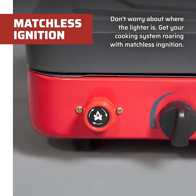 • Includes Camping Accessories: Includes adaptor for 1 lb propane cylinder and convenient carry handle; durable propane camp stove; stainless steel drip try