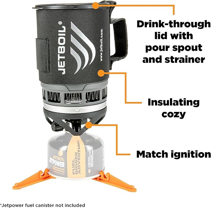 • Compatible Jetboil accessories, such as a coffee press, hanging kit, pot support, skillet, FluxRing cooking pot, and utensils make this a necessity for your next backpacking adventure.