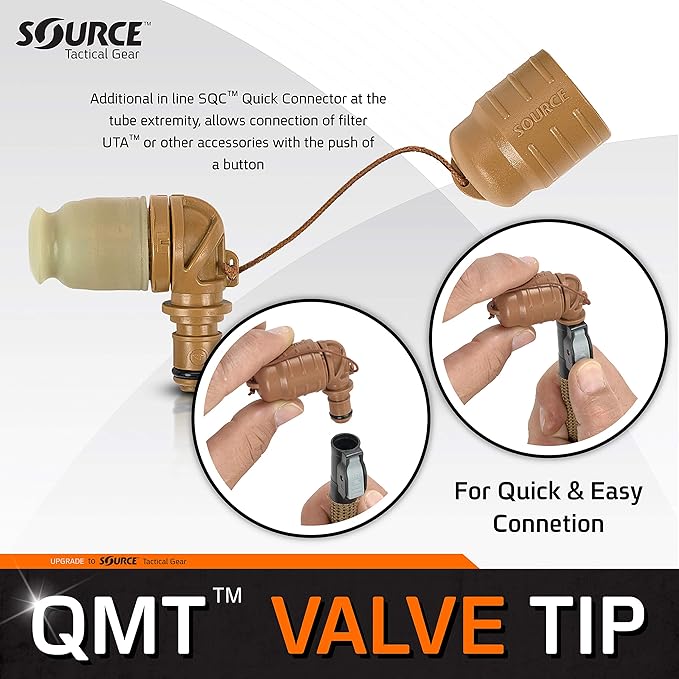 • QMT: QMT quick connector with auto-sealing mechanism for easy connection of Helix Bite Valve to any SOURCE Drinking Tube featuring QMT.