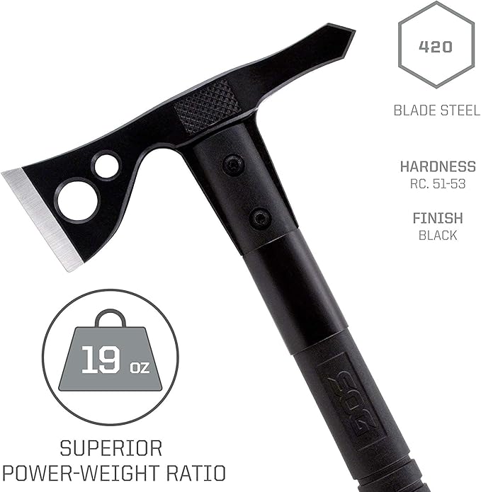 • SOG THROWING TOMAHAWKS WITH BITE: At 12.5 inches, these throwing hatchets and tomahawks are built to swing fast and true; these throwing axes feature a razor-sharp 420 stainless steel hatchet blade