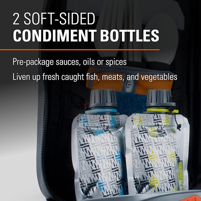 • Add flavor to food with waterproof salt and pepper shaker; Transport savory oils and sauces in soft-sided condiment containers with easy-to-use flip-top squeeze lids.